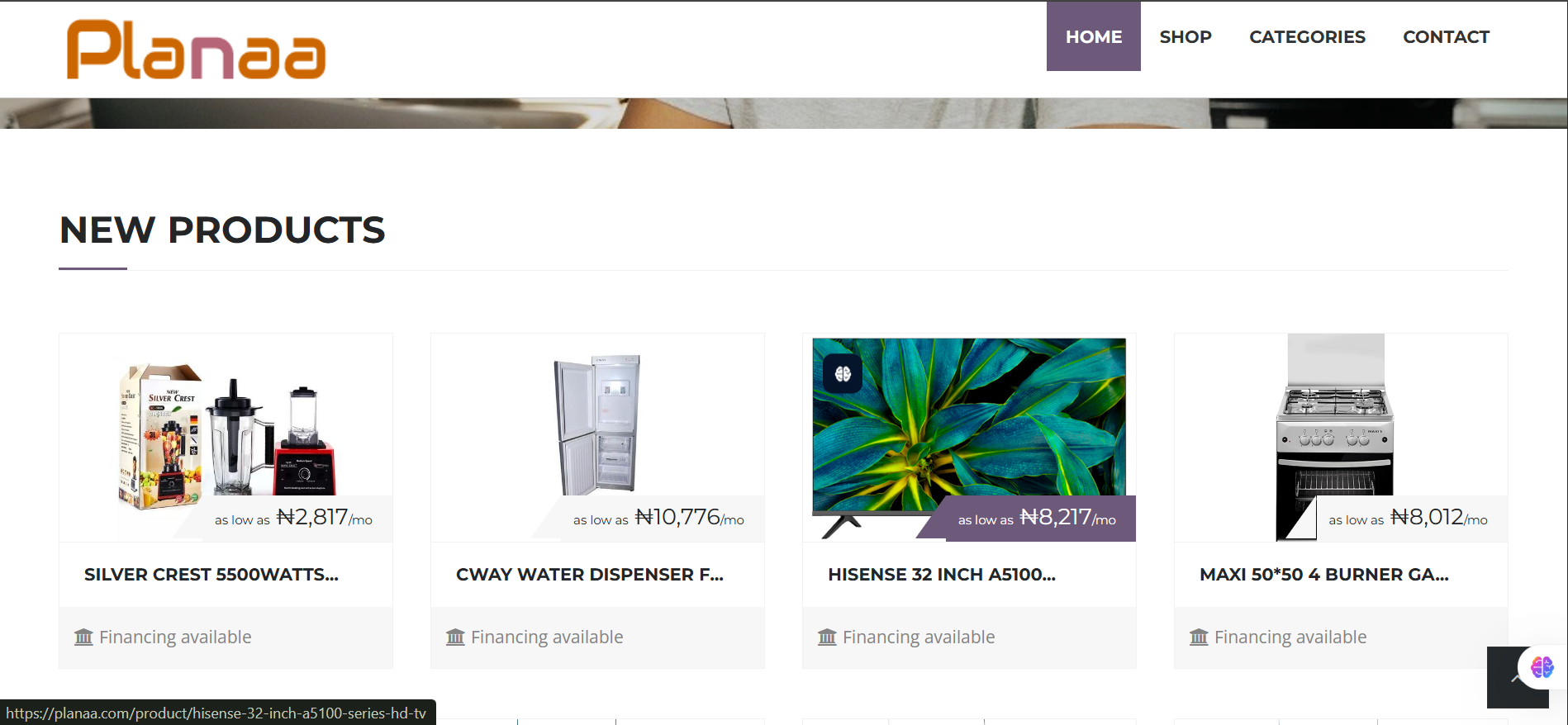 Planaa is Nigeria’s smart shopping and finance hub, a marketplace connecting buyers, sellers, and lenders. It enables users to shop, compare financing deals, and pay later with zero setup costs and low rates, while vendors handle shipping and banks manage payments.